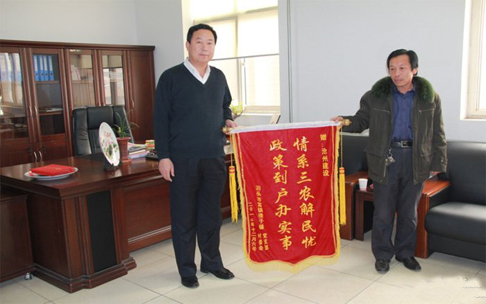 今日(10日)上午,泊头市富镇楼子铺村村支书代表全体村民来到了建投集团,为集团送来了锦旗,并为驻楼子铺村工作组队员送来了楼子铺村荣誉村民证书。